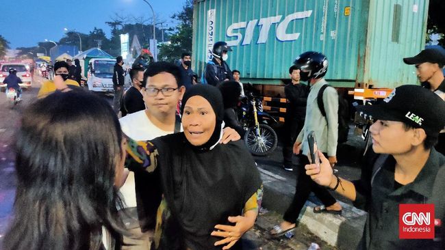 Mahasiswa lalu menenangkan wanita yang larut dalam emosi itu. Namun, dia tetap meminta mahasiswa segera bubar.